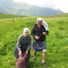 Schon seit vielen Jahren macht Renate "Kräuterferien" in einem Benediktinerinnenkloster in den Schweizer Bergen. Im Sommer 2009 war Harald zum ersten Mal mit von der Partie und sammelte ebenfalls Frauenmantel, Himbeerblätter und Bergminze unter den wachsamen Augen der "Kräuterschwester".